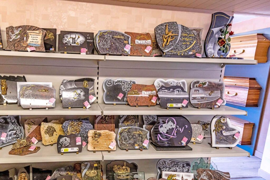 La marbrerie funéraire représente l’ensemble des travaux réalisés au sein d’un cimetière : la confection d’un caveau, la création et la pose d’un monument funéraire mais aussi l’ornement de ce dernier par des plaques, bronzes ou gravures.